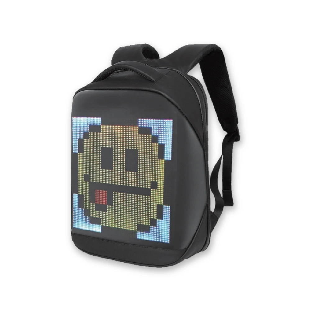La Mochila con Pantalla LED HD combina diseño moderno, funcionalidad y tecnología de vanguardia. Su pantalla HD de 96×128 píxeles ofrece imágenes y animaciones nítidas que puedes personalizar fácilmente mediante la app LOY vía Bluetooth. Fabricada en nylon y película de cuero, es impermeable, cuenta con doble cierre, correas ergonómicas y un interior espacioso para transportar tus pertenencias de forma segura y cómoda.