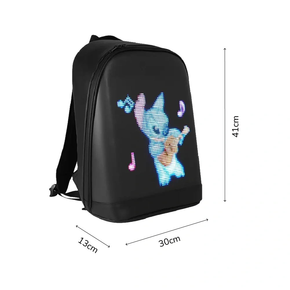 Su pantalla LED de 64 × 64 píxeles (25 × 25 cm) se controla fácilmente desde la APP LOY vía Bluetooth, permitiéndote mostrar animaciones, textos e imágenes personalizadas. Ligera (1.1 kg) y con amplia capacidad interna, es perfecta para uso diario, viajes o como accesorio para llamar la atención en eventos.